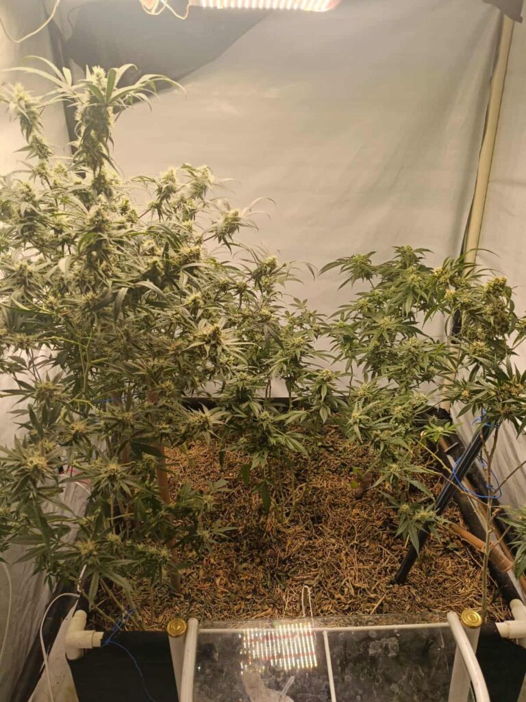 Na casa apontada onde a criança teria saído os agentes se depararam com o portão semiaberto. Tentado contato com moradores do local, porém ninguém atendeu. A equipe, então, adentrou ao imóvel e em um dos cômodos foi localizada uma estufa caseira contendo vários pés de maconha, sendo nove pés em uma caixa grande, dois pés menores e mais dezesseis mudas em copos de plástico. O local estava todo iluminado e ventilado.