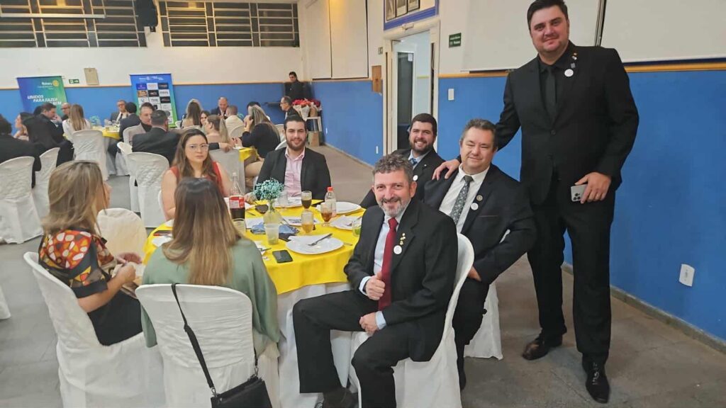 O jantar festivo seguiu um protocolo com diversos rotarianos que fizeram uso da tribuna para enaltecer o trabalho de todos que buscam realizar ações objetivando mudanças nas comunidades, promovendo a paz e a boa vontade.