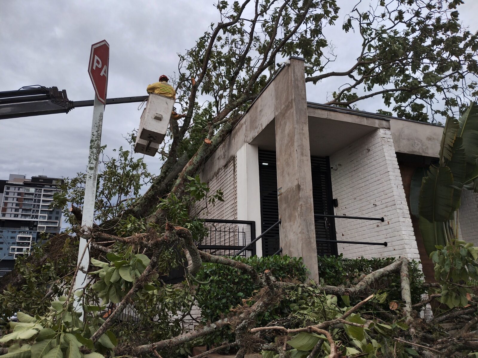 Desde o início da ocorrência, mais de 150 servidores municipais atuaram de forma ininterrupta em diversas frentes de trabalho, como a desobstrução de vias, retirada de cerca de 100 árvores caídas, apoio às famílias em situação de risco, limpeza da cidade, além da reorganização de unidades de saúde e escolas impactadas.