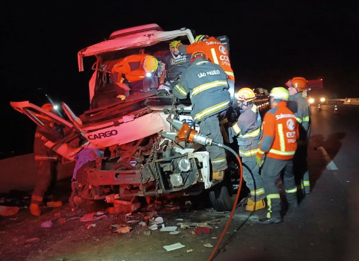 Na noite desta sexta-feira (3) as equipes do Corpo de Bombeiros de Botucatu e Itatinga, com apoio da CCR Vias, Polícia Militar Rodoviária e Agência Reguladora de Transportes do Estado (Artesp), atenderam uma ocorrência de colisão traseira entre dois caminhões.
