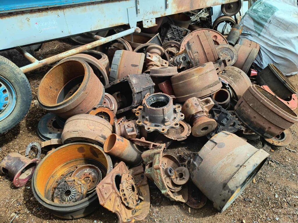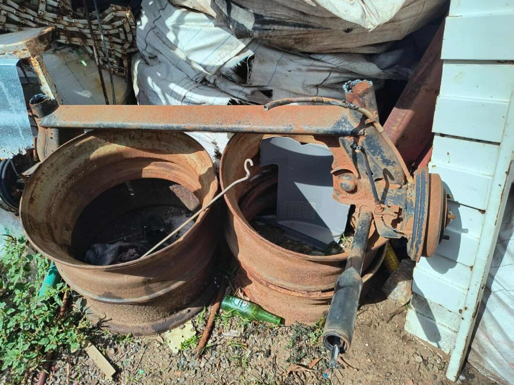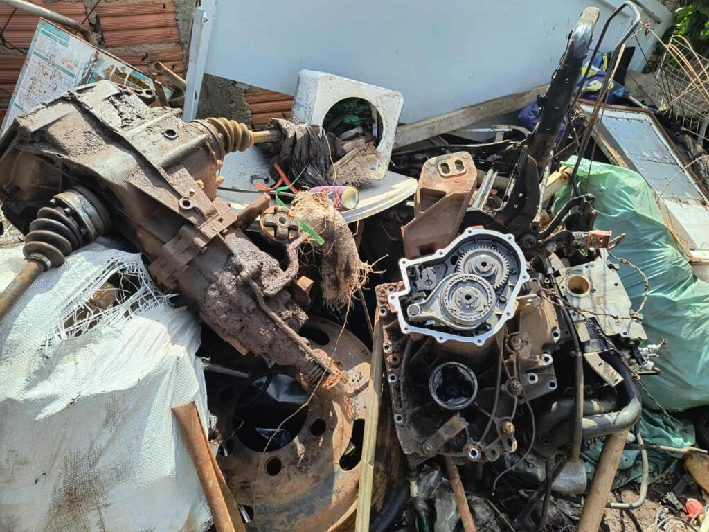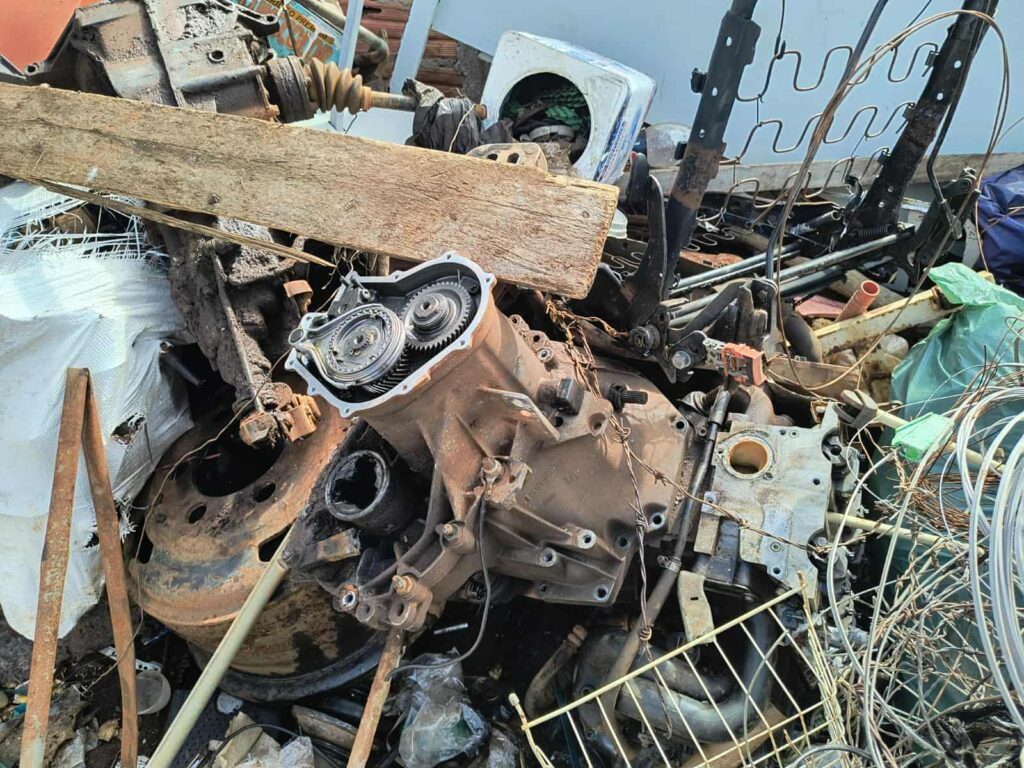 Em um dos locais fiscalizados, foram identificadas diversas partes de caminhões e automóveis — entre elas chassis, cabines, motores e câmbios — desmontadas de maneira irregular e sem autorização do órgão competente.