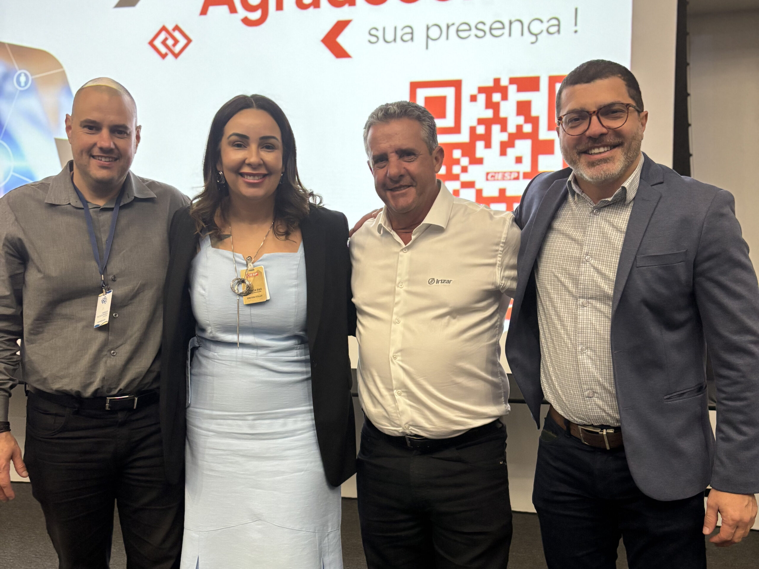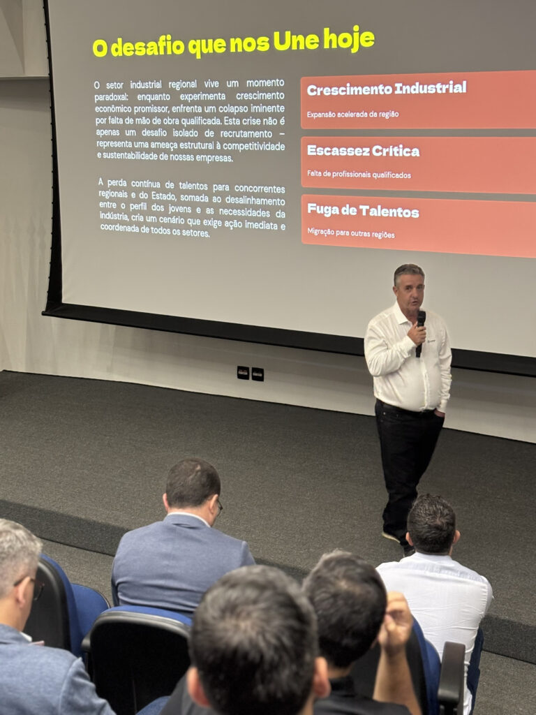 A programação contou ainda com apresentação do SENAI, que trouxe uma análise técnica com dados e tendências do cenário regional de empregabilidade industrial, oferecendo base factual para as decisões estratégicas — com dados concretos e projeções sobre a carência de mão de obra local.