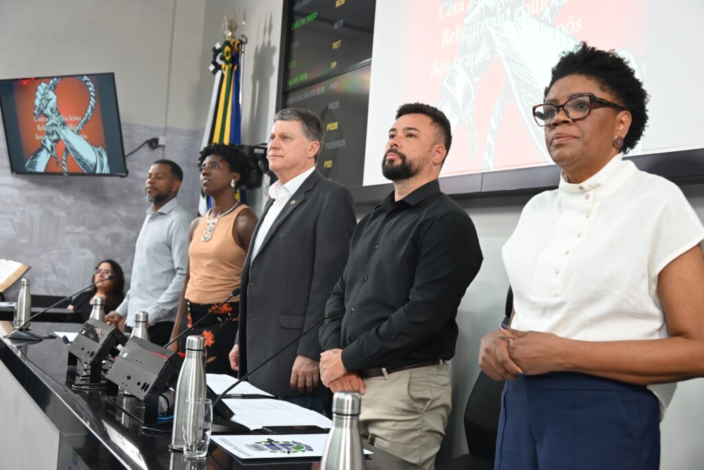 Também estiveram presentes os vereadores Carlos Trigo (MDB), Ielo, Thiago Padovan, e Valmir Reis (PP), sendo a Audiência  iniciada com o Hino à Negritude, símbolo da resistência e do orgulho da cultura afro-brasileira.